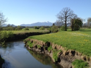 7,5 km lange sehr sonnige Rundwanderung mit grandiosem Alpenpanorama in kleinbäuerlicher Landschaft nördlich von Bad Aibling.